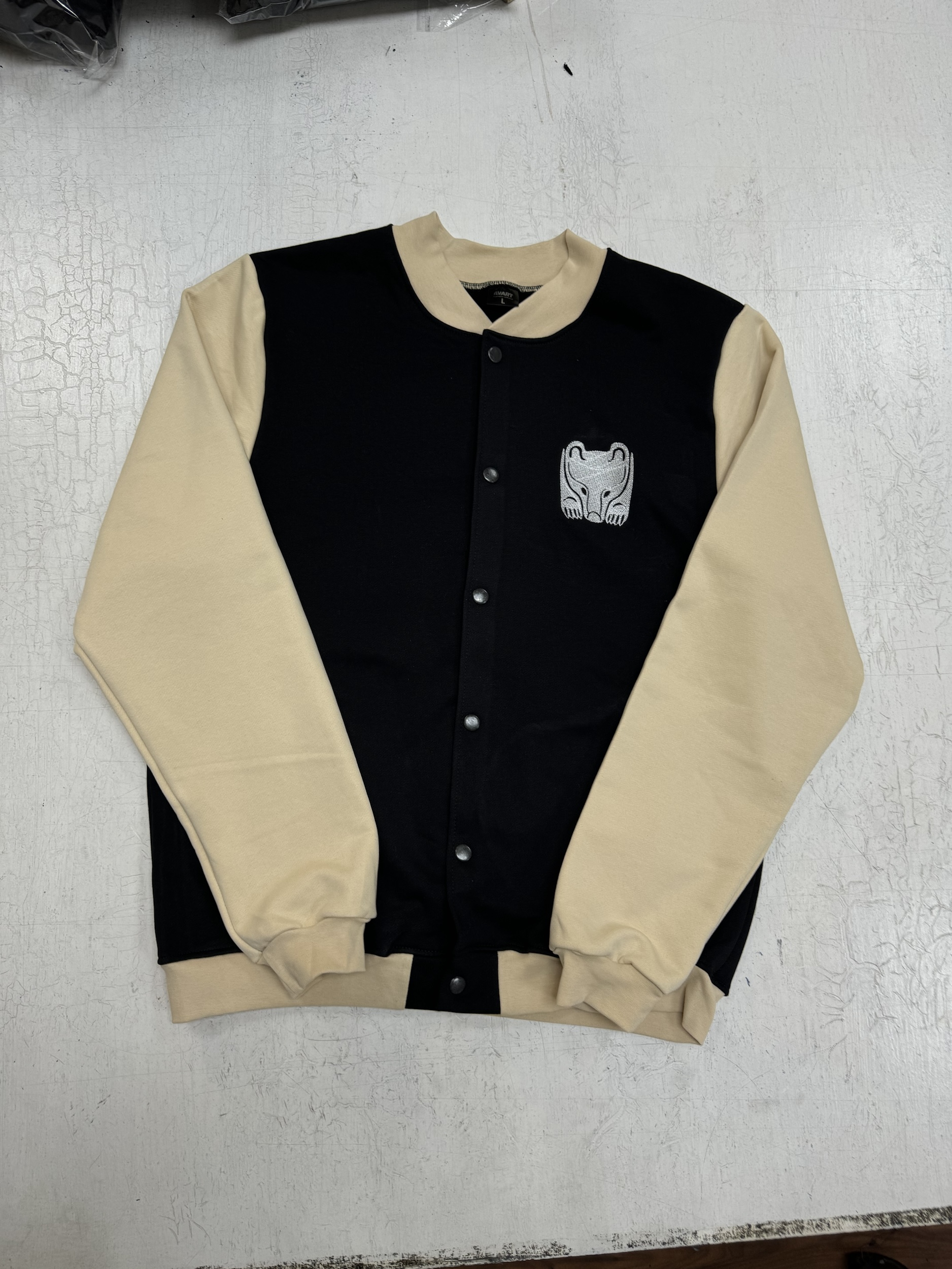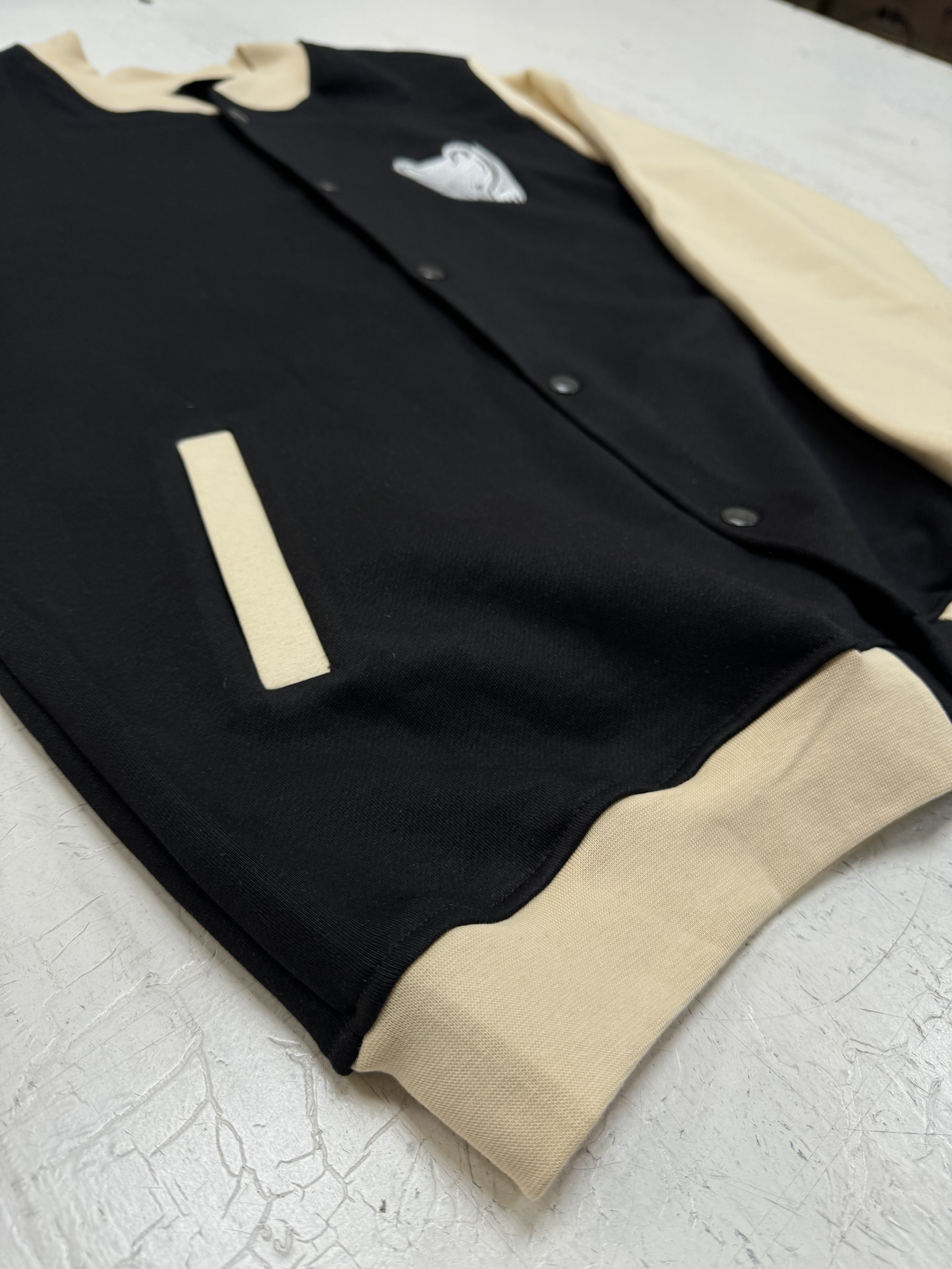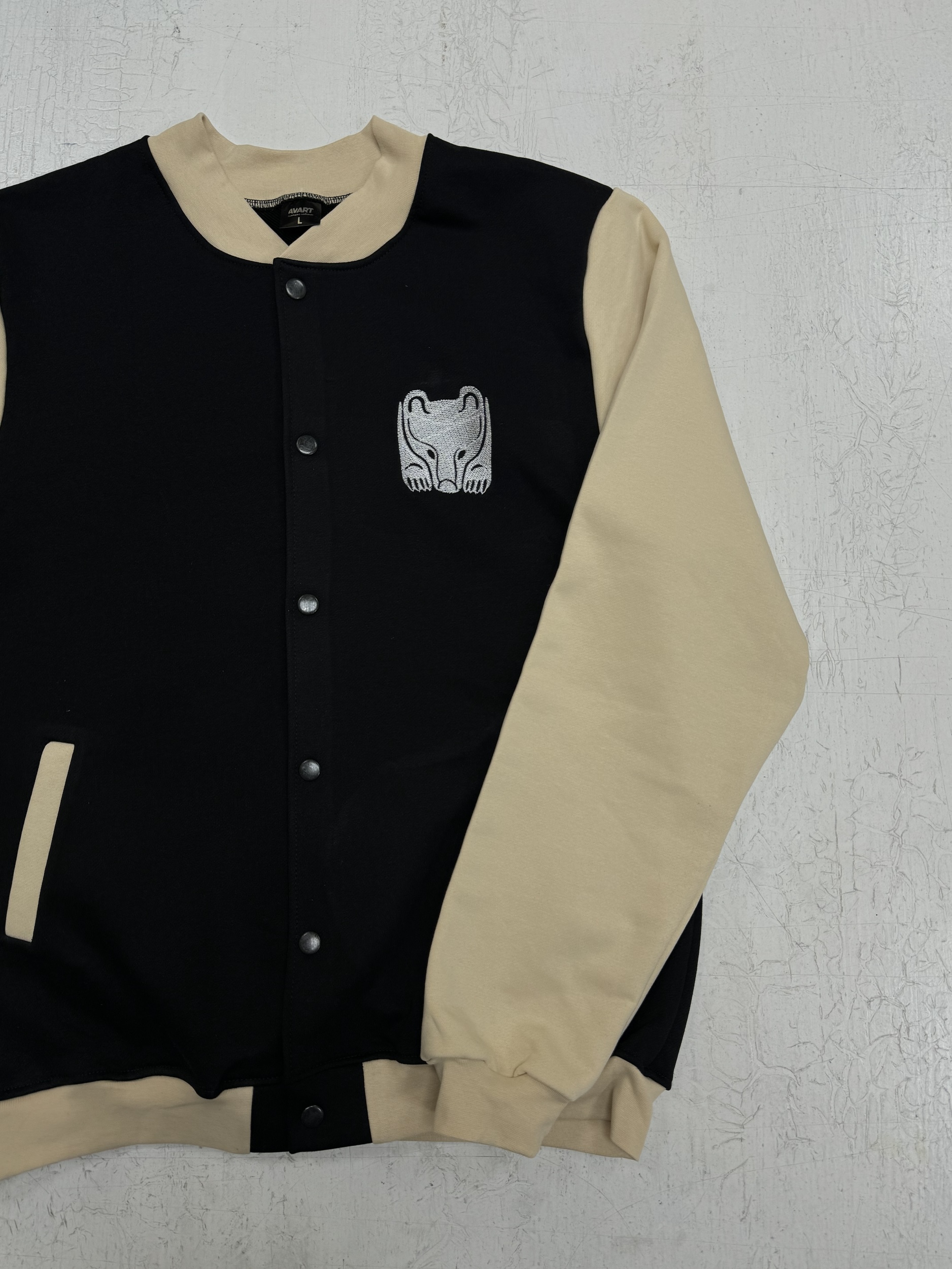 Создан новый бомбер в классическом сочетании черного и бежевого цветов. На груди аккуратная вышивка с изображением медведя, символизирующая силу и уверенность. Спина дополнена фразой «Сердце Пармы бьется в твоем ритме», что добавляет изделию глубокий смысл и эмоциональную связь.