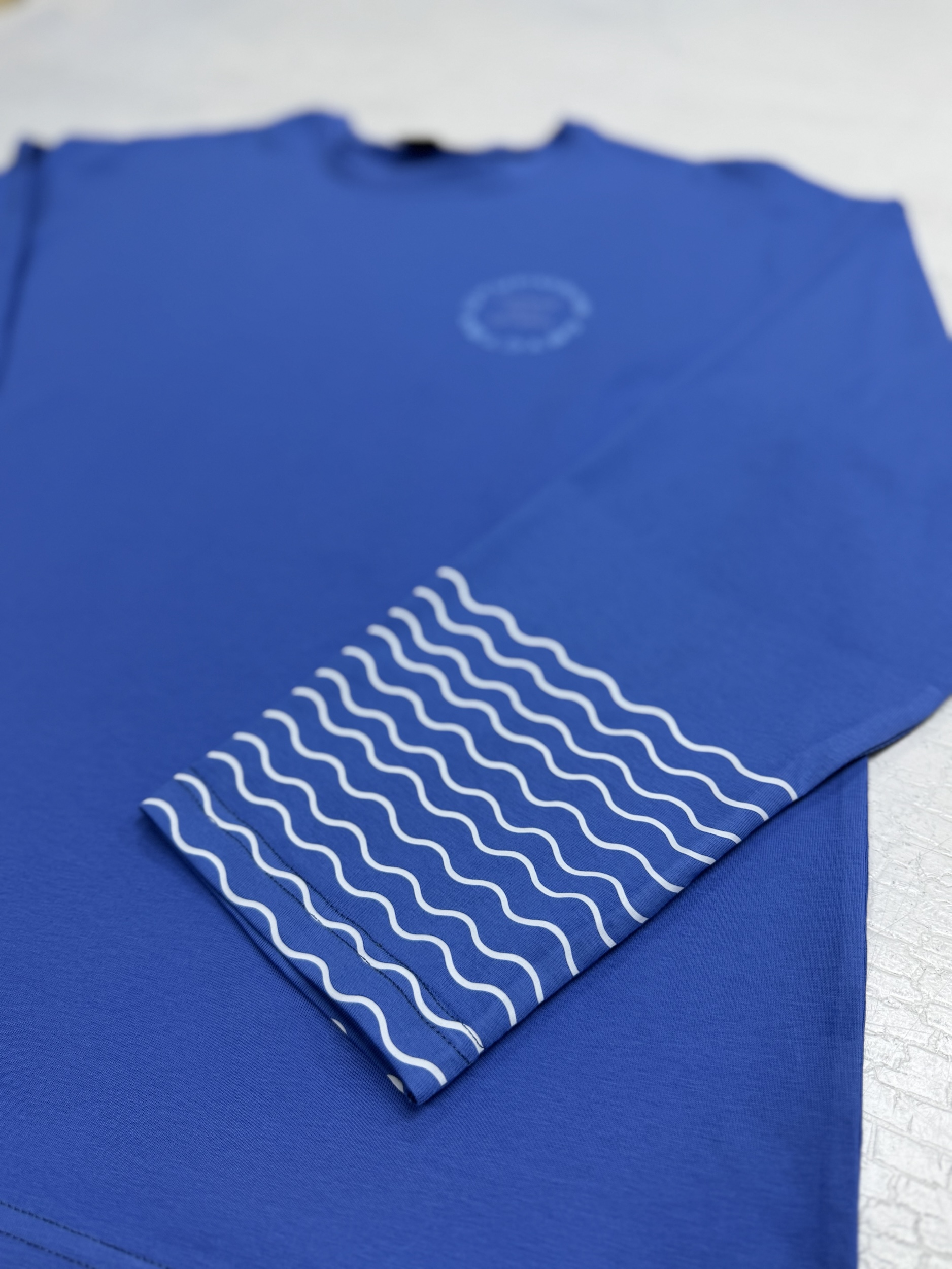 Этот стильный лонг оверсайз в приятном цвете гортензия создан для тех, кто любит комфорт и оригинальность. Дизайн дополнен волнообразным принтом на рукавах, который ассоциируется с морскими мотивами, и лаконичной надписью, подчеркивающей сплоченность команды.